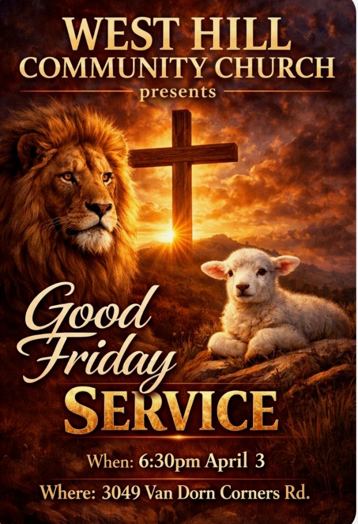 April 3rd ~ GOOD FRIDAY evening candlelight, communion service 6:30pm